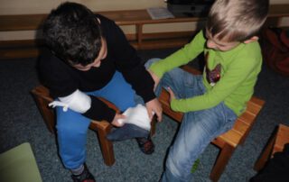 Frau Bruckmann erklärte unseren "Füchsen", wie man kleine Wunden selbst versorgen kann und natürlich